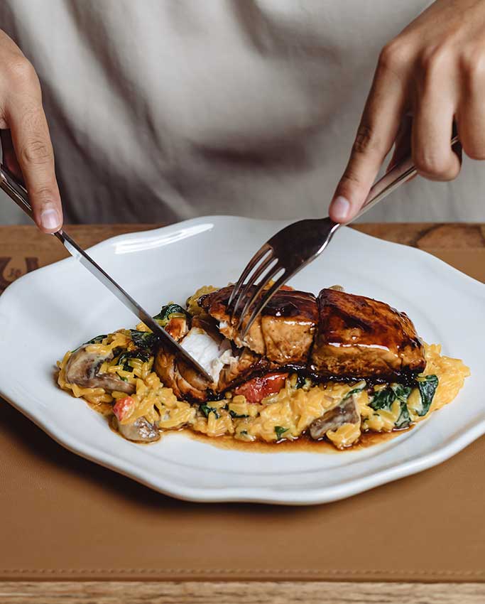 Cocinamos con precisión. Dominamos la parrilla para potenciar carnes magras, controlamos los tiempos de braseado para extraer intensidad, y perfeccionamos la reducción de salsas negras con matices agridulces. Cada técnica es llevada al límite para que el platillo hable con identidad propia.